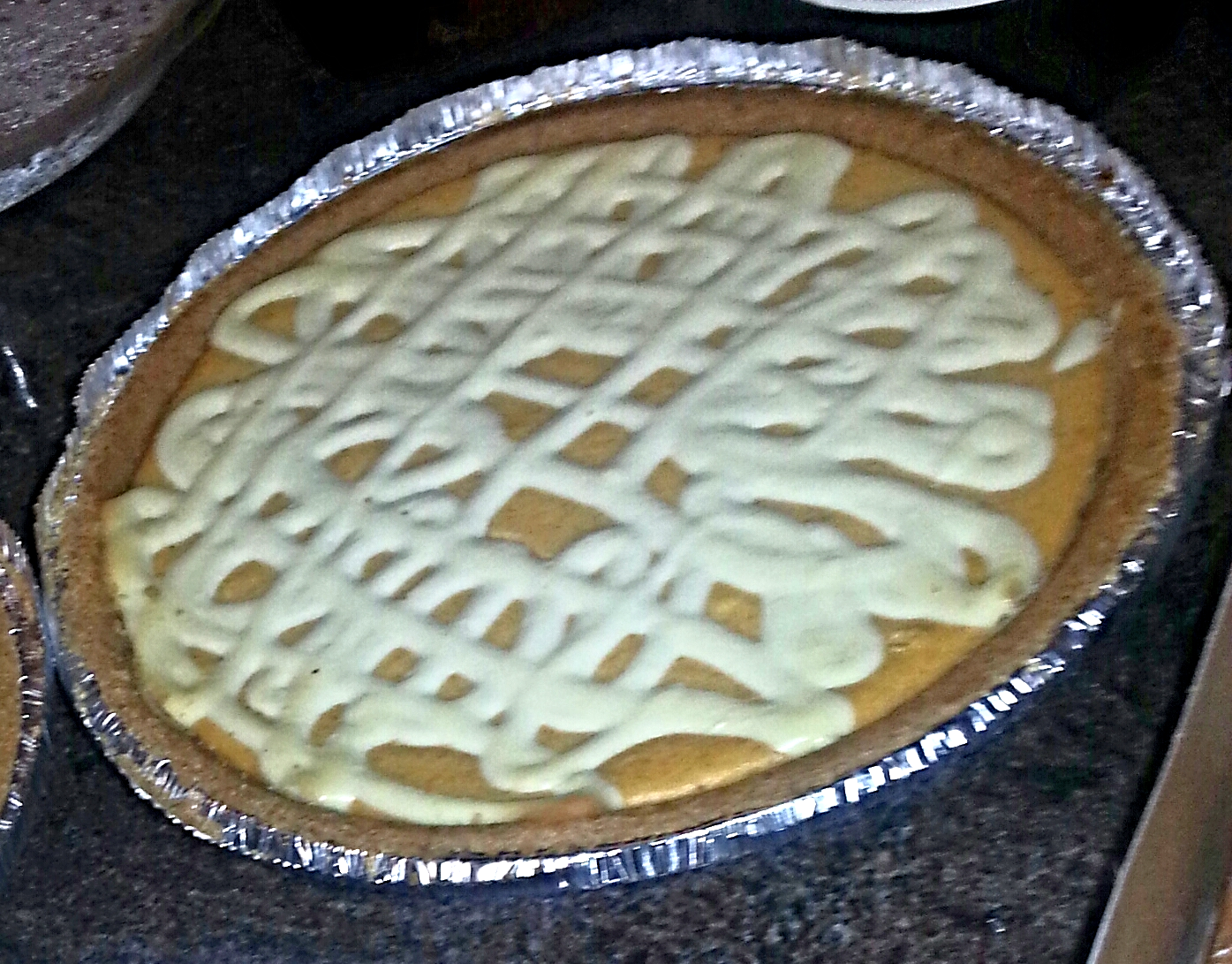 - Spoon about half of the pumpkin batter into crust (or crusts); top with spoonfuls of half the plain batter.